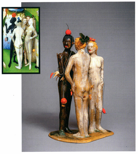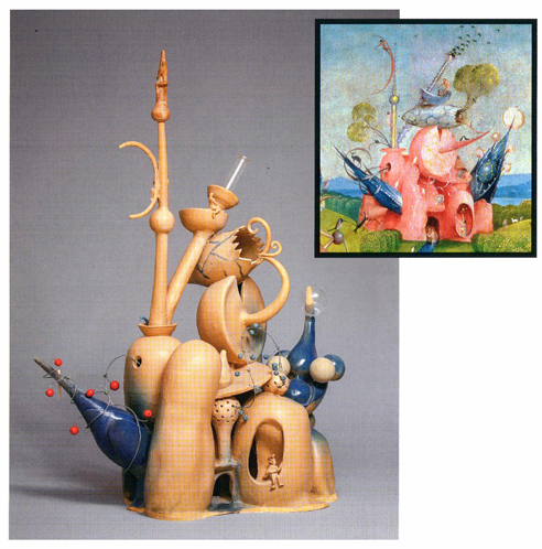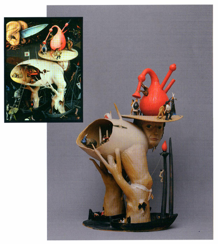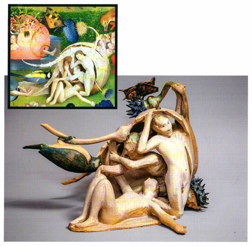 Lela je u svojoj postavci transponovala dvodimenzionalnu formu slike u trodimenzionalnu formu skulpture. Polazna tačka njenog stvaralaštva je Bošova triptih slika »Vrt uživanja«. Na levoj slici triptiha naslikani su prizori raja, sa likom Boga, Adama i Eve u centru same slike. Na središnjoj slici triptiha prikazan je grešni ovozemaljski život čoveka u mnoštvo lascivnih, minucioznih scena, dok je na desnoj slici naslikan pakao i kao krajnje ishodište takvog poročnog i grešnog načina života. Slika prepuna detalja, simbolike, grotesknih i perveznih scena i likova je vekovima privlačila pažnju i interesovanja kako laika tako i poznatih kritičara, umetnika, istoričara, filozofa. Iznošena su razna tumačenja, teorije i mistifikacije Bošovog slikarstva. Jedno od „poslednjih“ tumačenja je svakako i muzičko uobličavanje segmenta sa pomenutog triptiha koji je nazvan „Himna pakla“ a koja je odsvirana po notama koje su prikazane u jednom malom detalju slike.