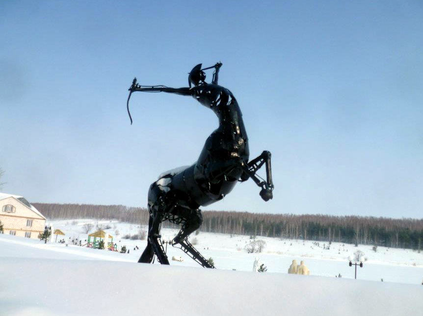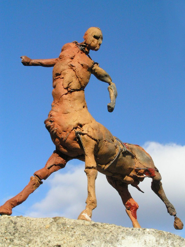 Gvozdena skulptura ,,Mučenik‘‘ sa simpozijuma u Španiji, još jednom stvara sintezu različitih verovanja, stilova i načina razmišljanja. Iz vitkog, očigledno namučenog tela kentaura, koji se takođe prožima u umetnikovom radu, izranja forma teškog i masivnog krsta koja simboliše mučeništvo u hrišćanstvu, u ranim periodima njegovog razvitka. Formu antikiziranog bića iz grčke mitologije, pa samim tim još jednog importa u rimskoj, nadovezuje nova religija, začeta u periodu mnogoboštva i idolopoklonstva, periodu poštovanja i verovanja u kentaure.