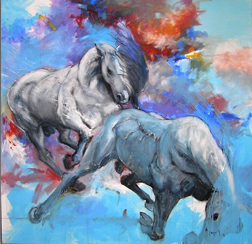Samo pitanje metafizike, geome-trije i matematičke pozadine te problematike, dubina prostora ili suprotnost kao i dodavanje snova, vanvremenskog, mitološkog, tajnovitog i nedokučivog, jesu integralni deo interpretacije ovih dela. U delu ,,Forcing‘‘, koje je jedno od ranijih dela na polju slikarstva, možemo na primer da vidimo umešnost i njegov stil izražavanja. Ovo je jedna intezivna i dinamična kompozicija sa akcijom koja buja i kulminira. Brzina galopirajućih konja lepo moduliranih tela, koji kao da lebde u prostoru u kome se sukobljavaju kontrastne boje, koje takođe prate aktivnost i pokrete protagonista, kao i jak kolorit brzih pokreta četkice u pozadini i paleta koja nije slučajna, već planski određena, pokazuju vladanje umetničkim jezikom.