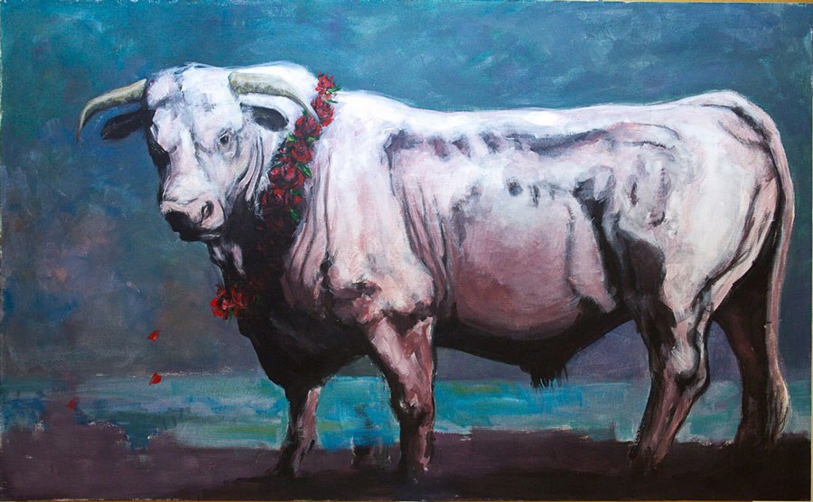 Hadži Ahmetović je, kao što smo već kroz skulpture uvideli, ljubitelj antike, Mediterana. Preko skulptura koje čine eklekticizam, spajanje starog i novog, različitih stilova i epoha, stižemo i do slika u kojima je dominantna figura bik i kolorit hladnih boja. Bikovi igraju veliku ulogu u kulturi i mitologiji čovečanstva još pre 17000 godina, što se vidi iz crteža u pećinama. Takođe je poznato da su zastupljeni i u kulturama antičke Grčke, Rima i Sumeraca. I dan–danas imaju značajnu ulogu u hinduizmu, kao i heraldici. Bik za Hadži Ahmetovića predstavlja Zevsa iz poznate scene otmice Evrope, koja se pominje u Ovidijevoj Metamorfozi, ali i kao veoma često stvarano likovno delo, pogotovo rasprostranjeno u periodu renesanse, baroka i neoklasicizma. Takođe, zastupljenost plave boje i hladnijih tonova predstavlja sam Mediteran i njegova mora. Ceo jedan ciklus, ,,Case of abduction of Europe‘‘ jeste urađen na osnovu ove mitološke legende. Njome je začet jedan novi svet, nova civilizacija na tlu kontinenta Evrope, čiji smo mi deo, samim tim i ta legenda čini naš identitet, a sve to uz ono uzvišeno – metafizičko i matematičko.